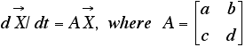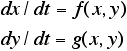 In the simplest nontrivial case, where f and g are homogeneous linear functions of x and y, the system is generally written as
